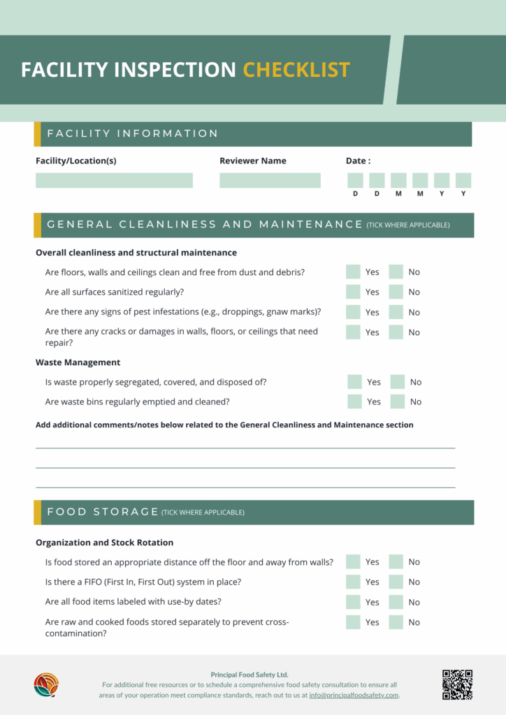 This Comprehensive Food Safety Facility Inspection Checklist is designed to assist you in conducting thorough and effective inspections of your food handling and processing areas.